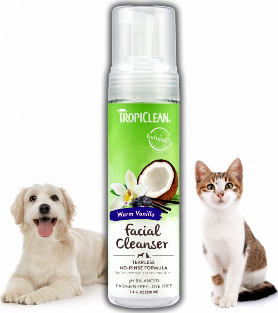 TropiClean bezoplachové čistící mléko na tvář pomáhá udržet roztomilou tvář vašich mazlíčků čistou a svěží v období mezi koupelemi.