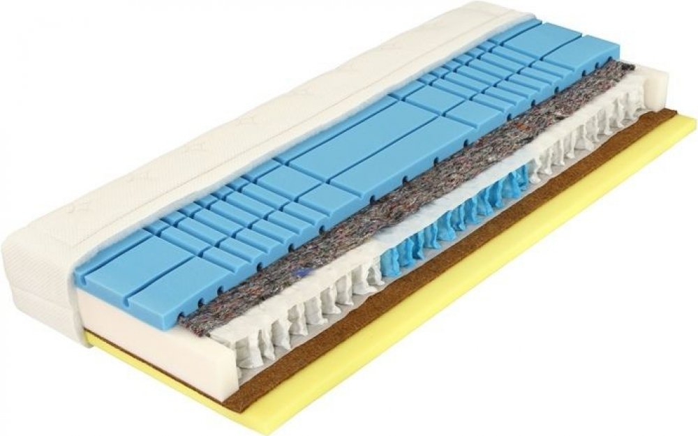 - DOKONALÉ POHODLNÉ A VZDUŠNÉ JÁDRO – Ortopedická 7– zónová konstrukce s paměťovou pěnou bez lepení a prodyšným, pohodlným latexem. Objemové hmotnosti vrstev 35 – 65 kg/m3 s nejdelší možnou mechanickou i hygienickou životností.