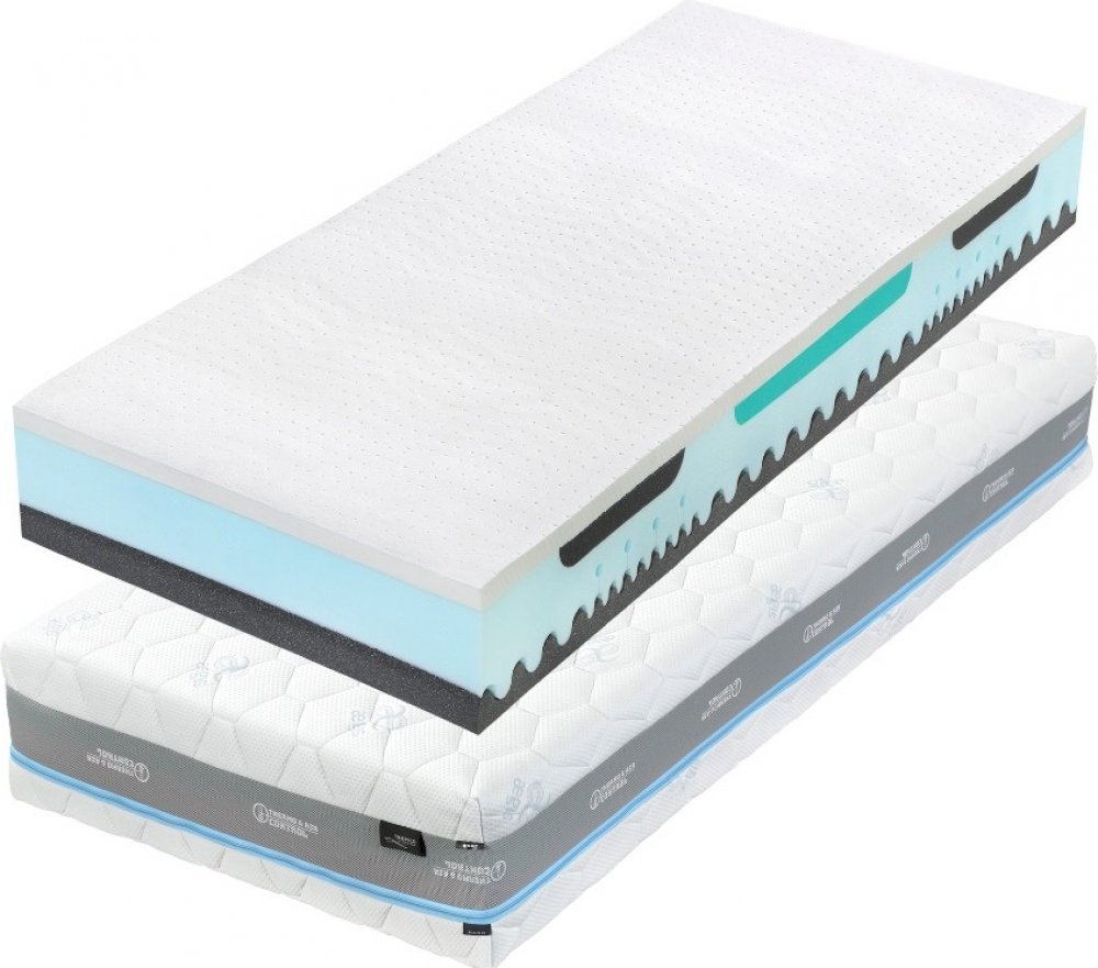 - LATEX AIR | TUHÁ STRANA MATRACE – Kdo jednou spal na latexu, vždycky spal na latexu. Termoregulace, pružné pohodlí, odolnost. Latex, který dýchá – perforace odvětrává pot z matrace a udržuje lůžko suché a čisté.