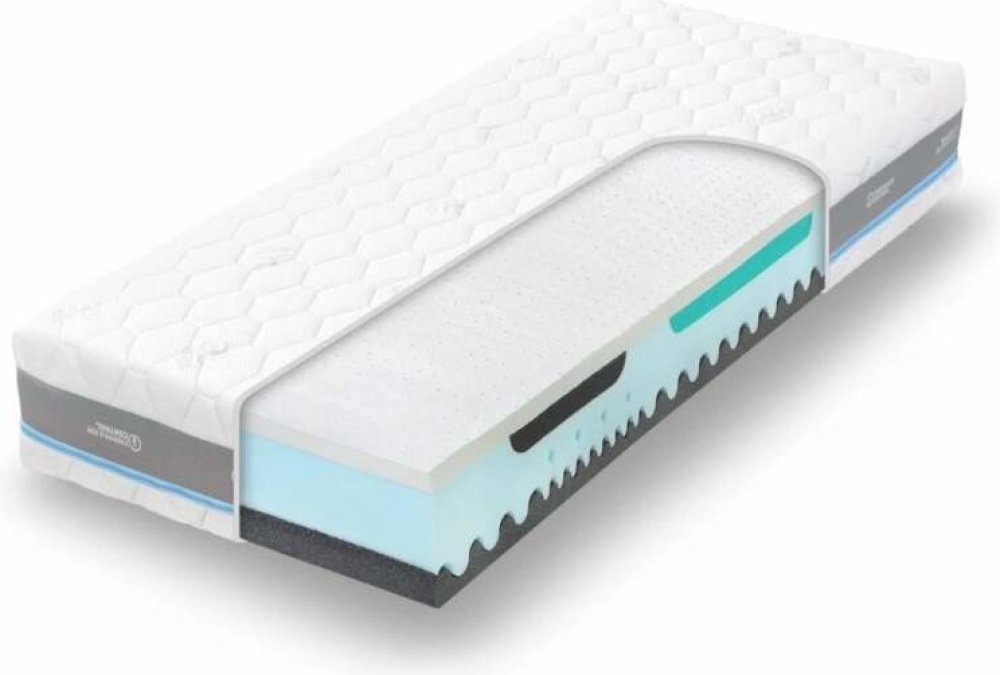 Super vzdušná matrace ze studené pěny s dvěma funkčními stranami – tužší latexovou a měkčí paměťovou. Propracovaný ortopedický zónový systém podpírá tělo a uvolňuje znavené svalstvo v každé poloze, po celou noc. Špičkový antibakteriální a protiroztočový pratelný potah s přírodními vlákny. Vyrobena v Krkonoších.