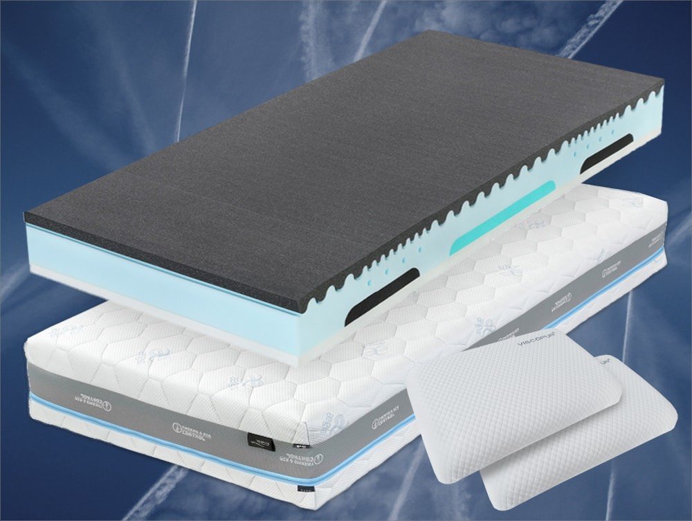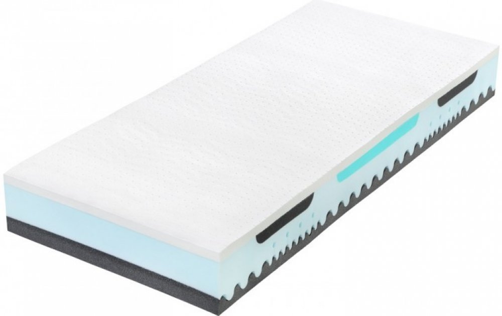 - VISCO AIR | MĚKČÍ STRANA MATRACE – Paměťová pěna znamená pohodlí a odlehčení pohybového ústrojí. Poskytuje relaxaci znavenému tělu, odlehčuje klouby a uvolňuje svaly. Svojí vynikající schopností kopírovat kontury těla jej podpírá a pomáhá udržet páteř v optimální poloze. Nelepená vrstva, která s každým pohybem těla provětrá celou matraci. Nelepená konstrukce vrstvy.