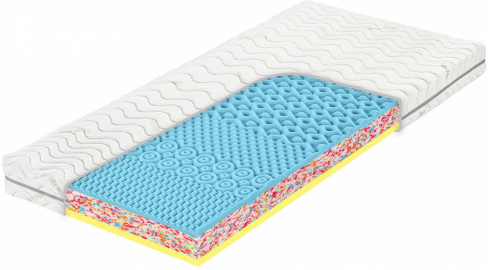 Strana s paměťovou pěnou pro maximální pohodlí a odlehčení kloubů a svalů má jemnou masážní profilaci, rozdělenou do 7 zón komfortu.