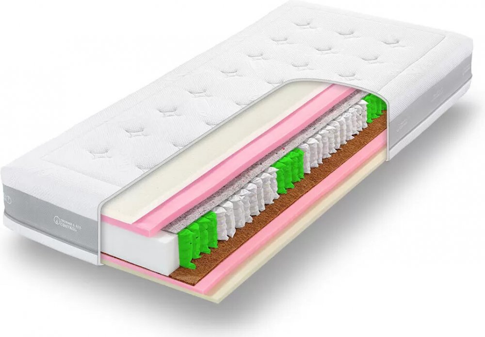 Podrobnosti o produktu 039545 180 x 220 x 26 Hebkost latexu, vzdušnost studené pěny, stabilita kokosové desky a maximální komfort. Vzdušnost, vynikající ortopedické vlastnosti, komfort spánku a odolnost. Pratelný potah s přírodními vlákny.