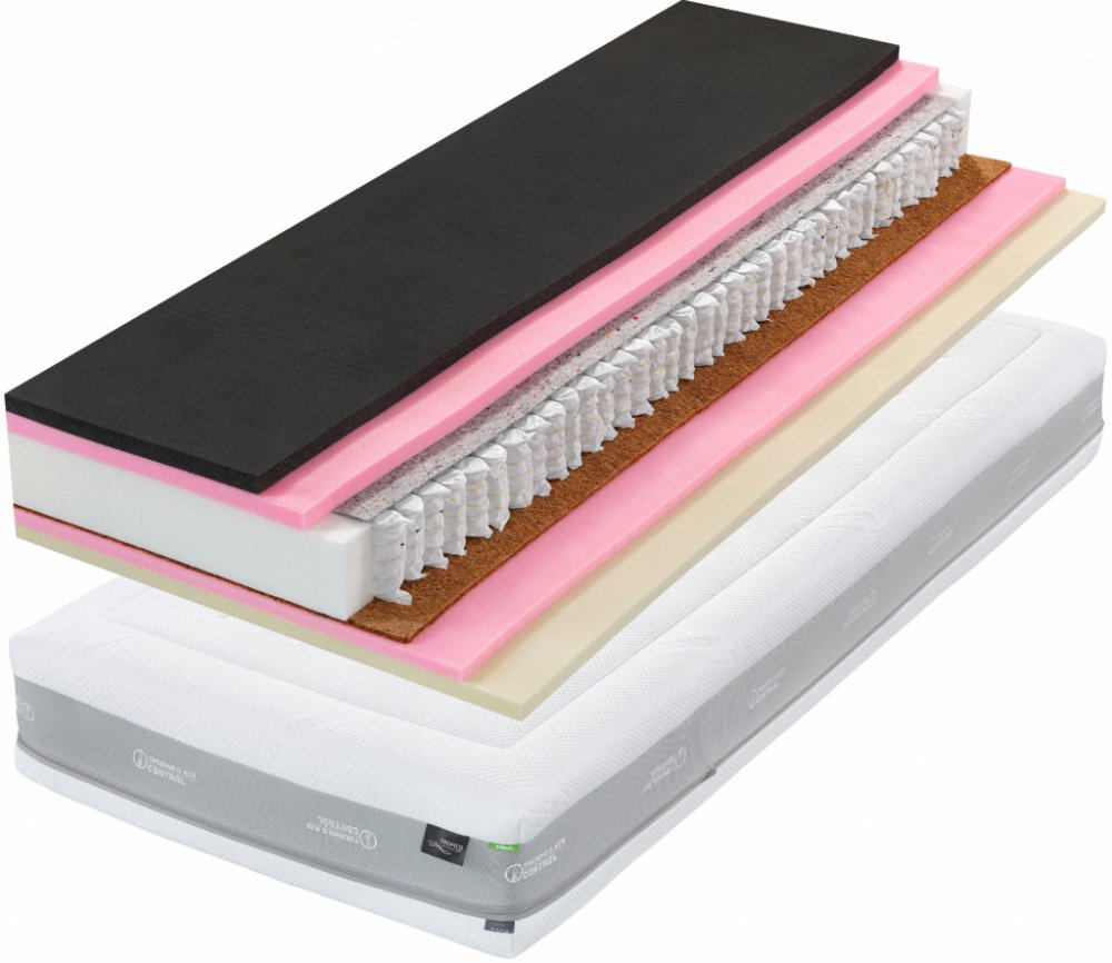 a middot;Multi Pocket. Pružinové jádro konstruované do 7 anatomických zón, precizně podpírá a kopíruje tělo v každé poloze. Robustní pěnový rám pro stabilitu konstrukce a pohodlné vstávání.
