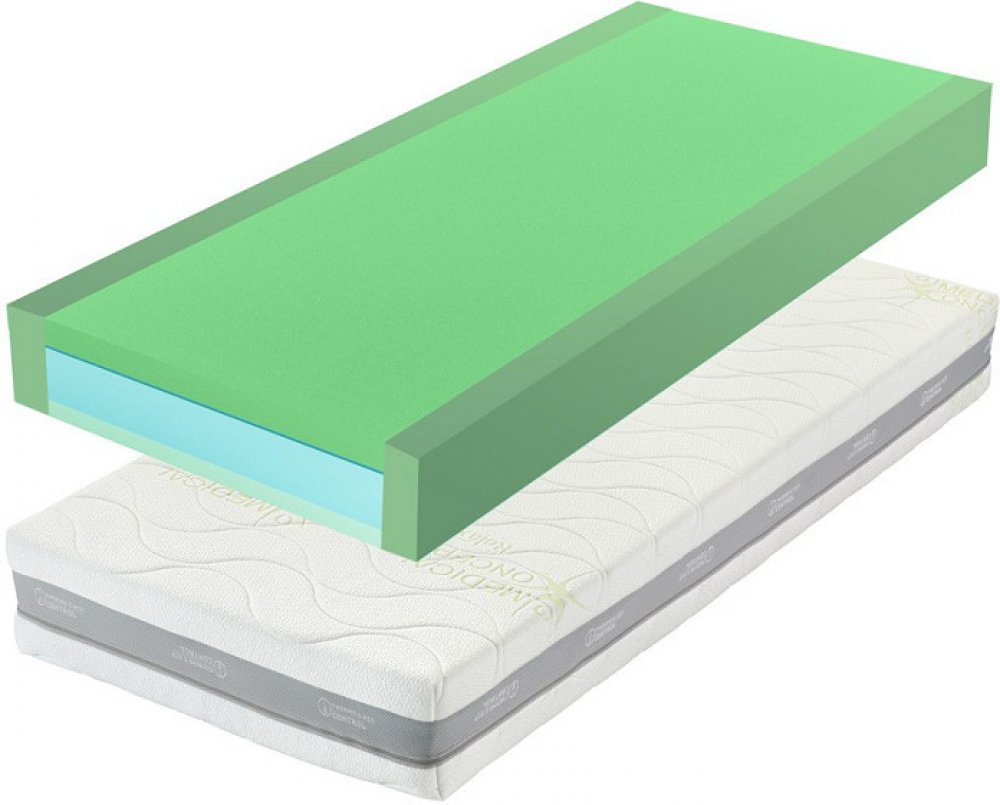 Varianta se zpevněným bokem, pro usnadnění vstávání. Vysoká ortopedická matrace, nabízející pohodlí pro různé tělesné proporce. S luxusním potahem dvojdílné konstrukce, s ventilační 3D mřížkou a 1 potahu s paměťovou pěnou.