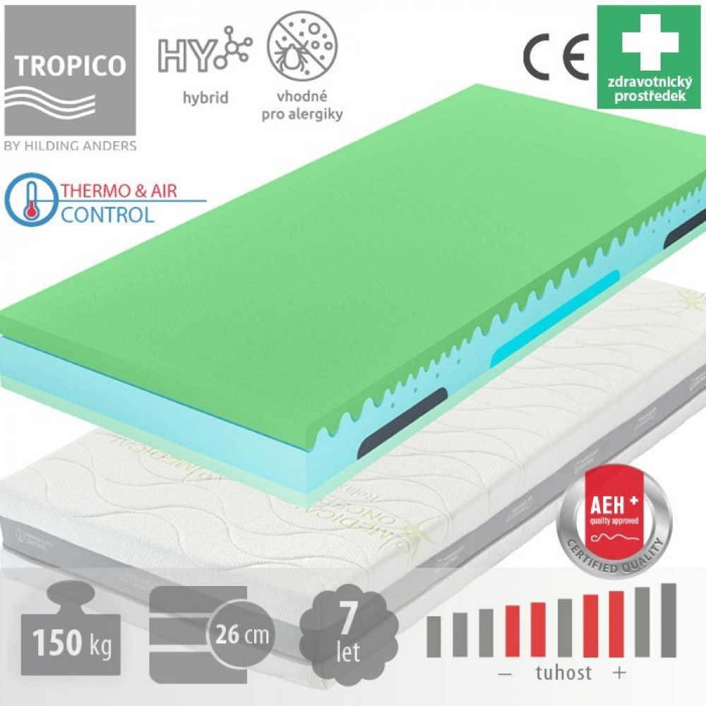 Tropico hybridní 5 zón 150 kg tuhost 3 středně tvrdá hybridní pěna