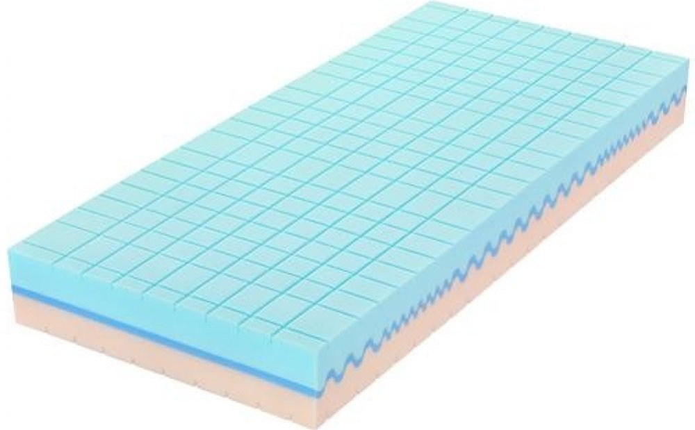 Hybridní pěna HY Blue - modrá pěna - tužší varianta hybridní pěny - střední vrstva dodává matraci přirozenou tuhost.