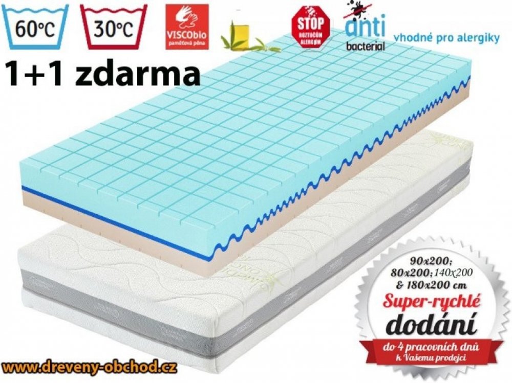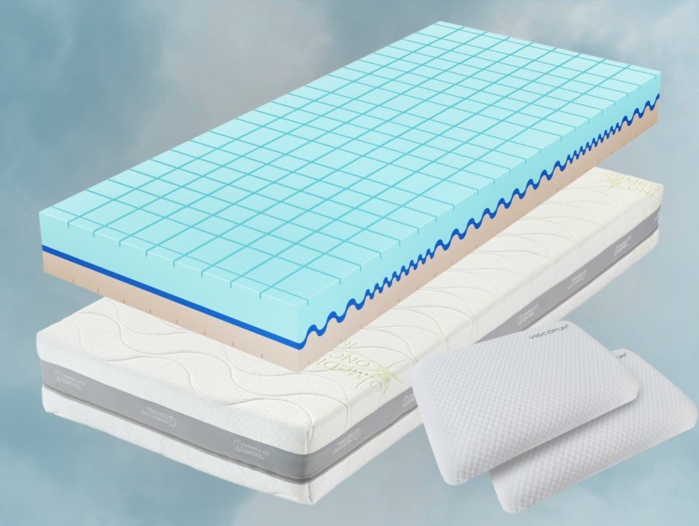 Paměťová (visco) pěna v potahu. Pohodlí, kopírování těla, odlehčení kloubů a relaxace. Vyrobena za použití přírodních surovin: antialergické vlastnosti, zdraví v ložnici, ohleduplnost k přírodě.