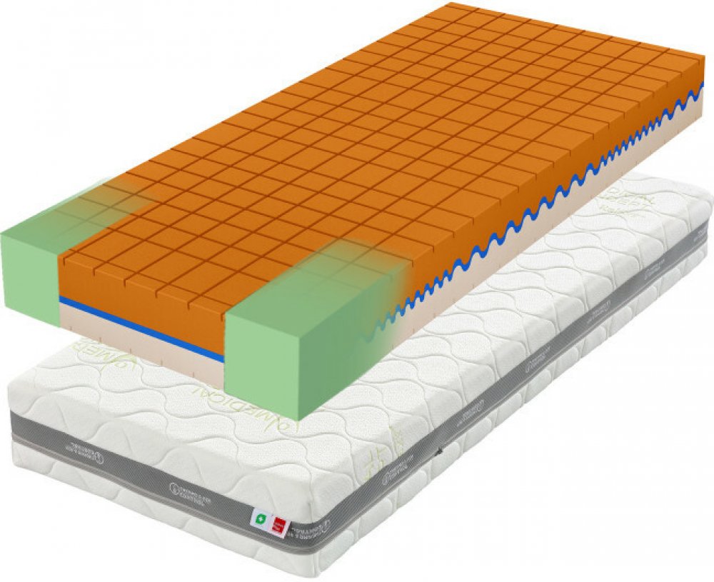 Vysoká ortopedická zónová matrace pro velké i malé. Nabízí 4 komfortní pocity ležení, zdravotní profilaci na obou stranách, hybridní konstrukci bez lepidel a multifunkční pratelný potah s vysokým podílem přírodních vláken a s odlehčující paměťovou pěnou. Měkčí, pružnější matrace pro milovníky měkčího ležení.