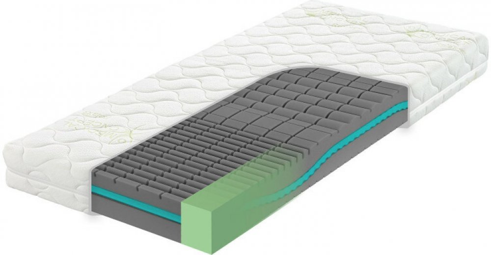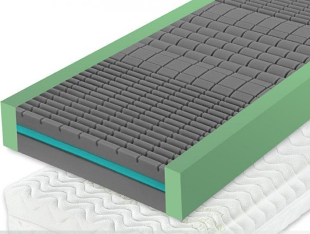 - Pěna Flexifoam®(strana hard) - pružná, odolná a prodyšná pěna vyšší objemové hmotnosti a vyššího vytvrzení. Vyznačuje se perfektní vzdušností, pružností a lehkostí, na obou ložných plochách se liší pouze profilací.