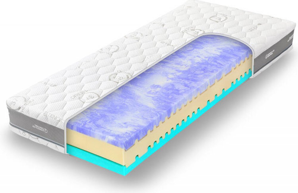 Nelepené jádro s provětrávacími kanálky pro maximální hygienu a omezení pocení. Super pružná a tuhá strana (zelená) a super jemná a ko...