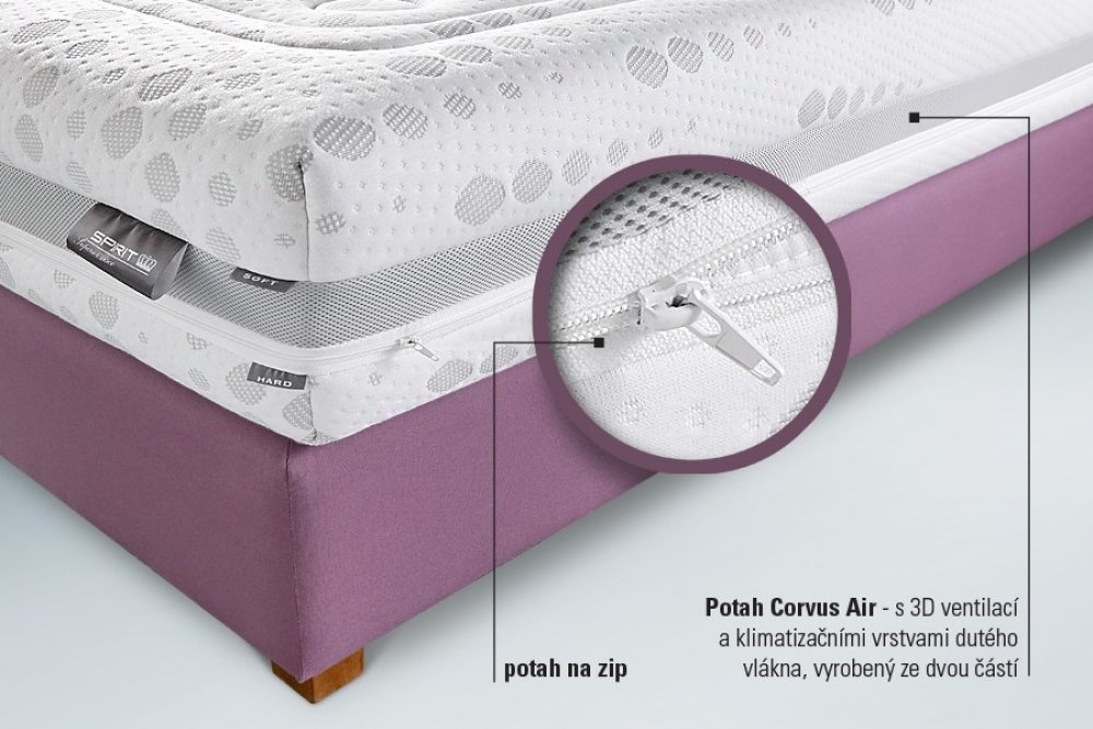 Potah je opatřen zipem a jeho praktické dvoudílné provedení potahu vám umožní jednoduchou manipulaci a praní pro snadnou údržbu vašeho lůžka.