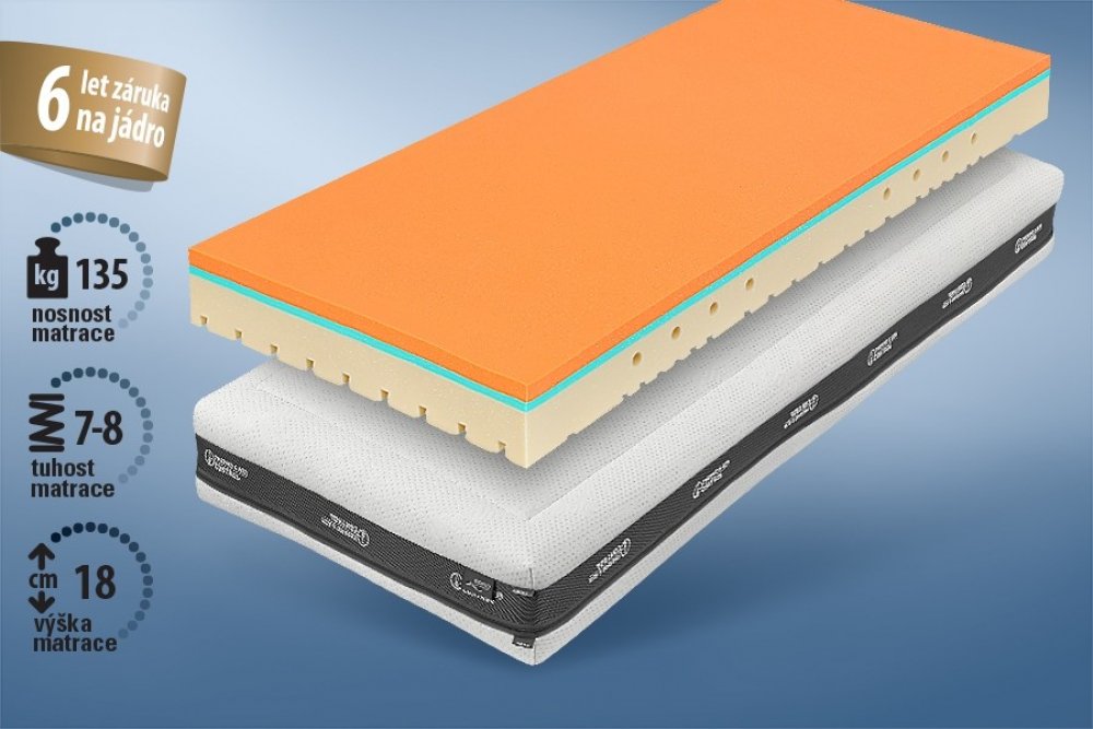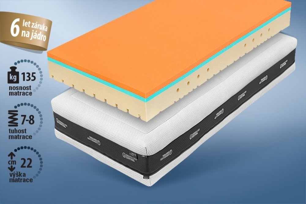 Má 7 zón se speciální profilací CubeCare ve tvaru kostek. Pomáhá zabránit pocitu přeležení – každá kostka reaguje samostatně. Navíc je hodně pružná – budete se snadno otáčet.