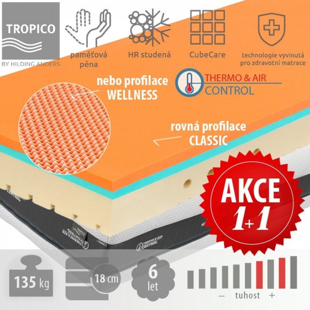 Tropico pěnové 135 kg tuhost 3 středně tvrdá paměťová pěna