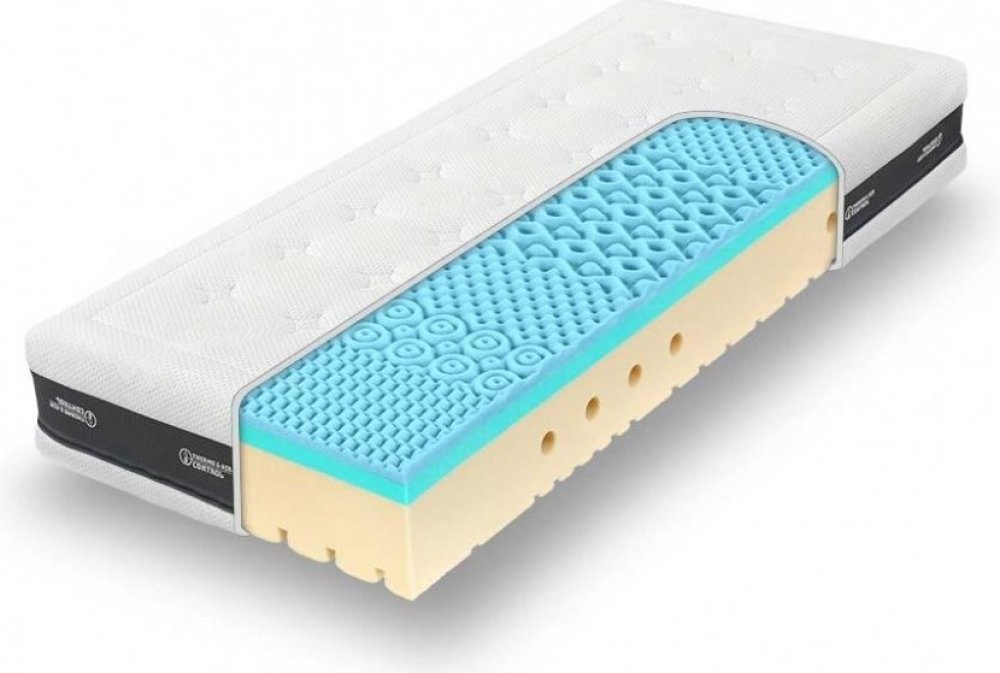 tyrkysová vrstva - Studená pěna Flexifoam - super pružná studená pěna napomáhá správné termoregulaci a zajituje extra odrazovou pružnost. To znamená, že se při spánku budete snadno otáčet.