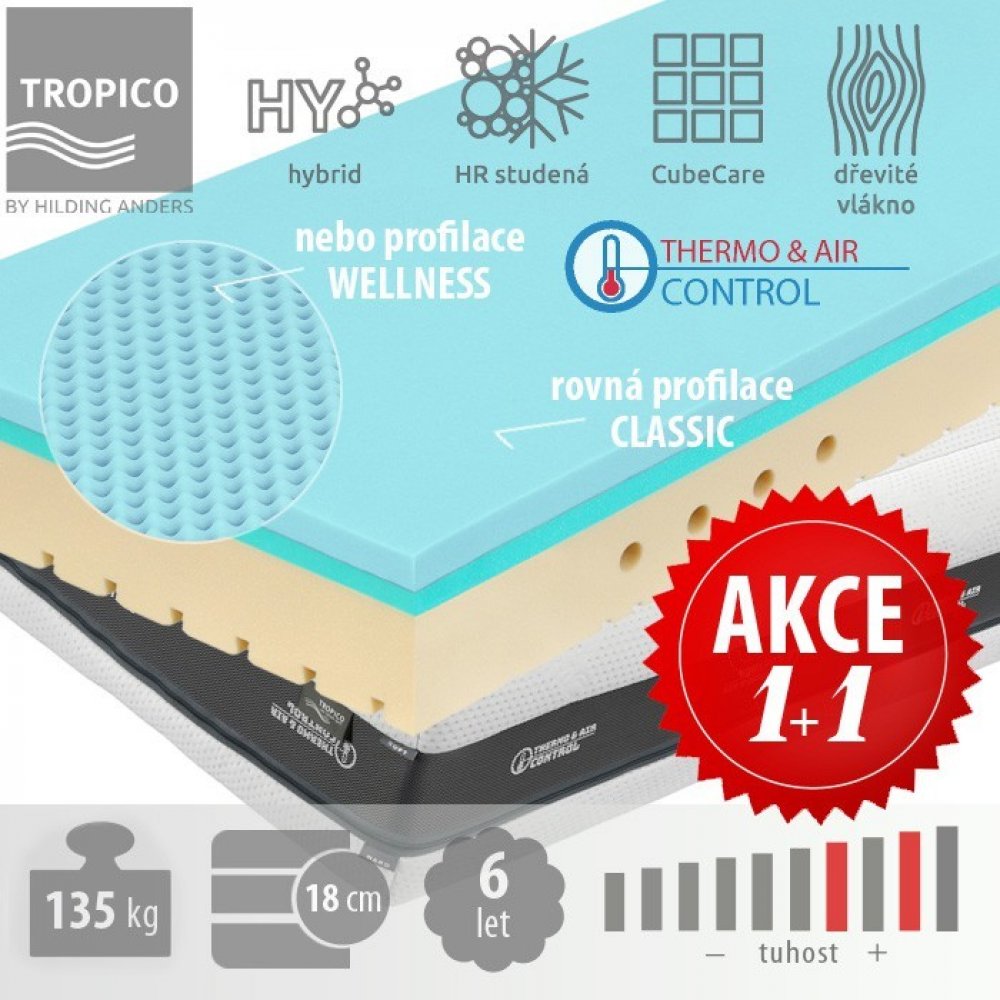 Tropico pěnové 7 zón 135 kg tuhost 4 tvrdá hybridní pěna