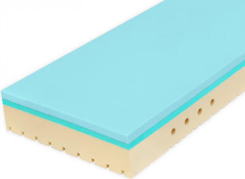 Hybridní pružná pěna: Elastická vrstva, zvyšující odrazovou pružnost, vzdušnost a pocitovou pevnost matrace. Zajišťuje optimální klima, čímž napomáhá předcházet pocení.