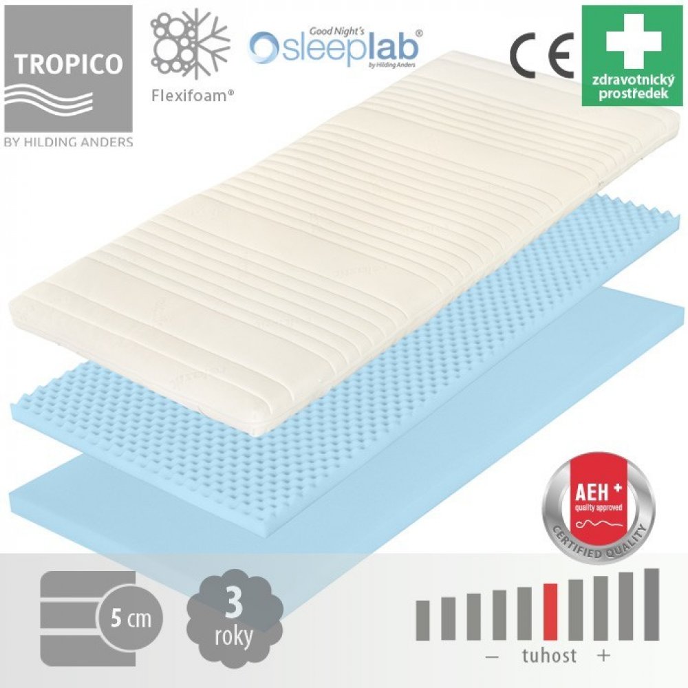 Topper FLEXI 5 cm - vrchní matrace ze studené pěny 85 x 220 cm Luxusní vrchní (krycí) matrace z pružné pěny Flexifoam® vyšší střední tuhosti v pratelném potahu s gumovými pásky pro snadné přichycení i k vysokým matracím.