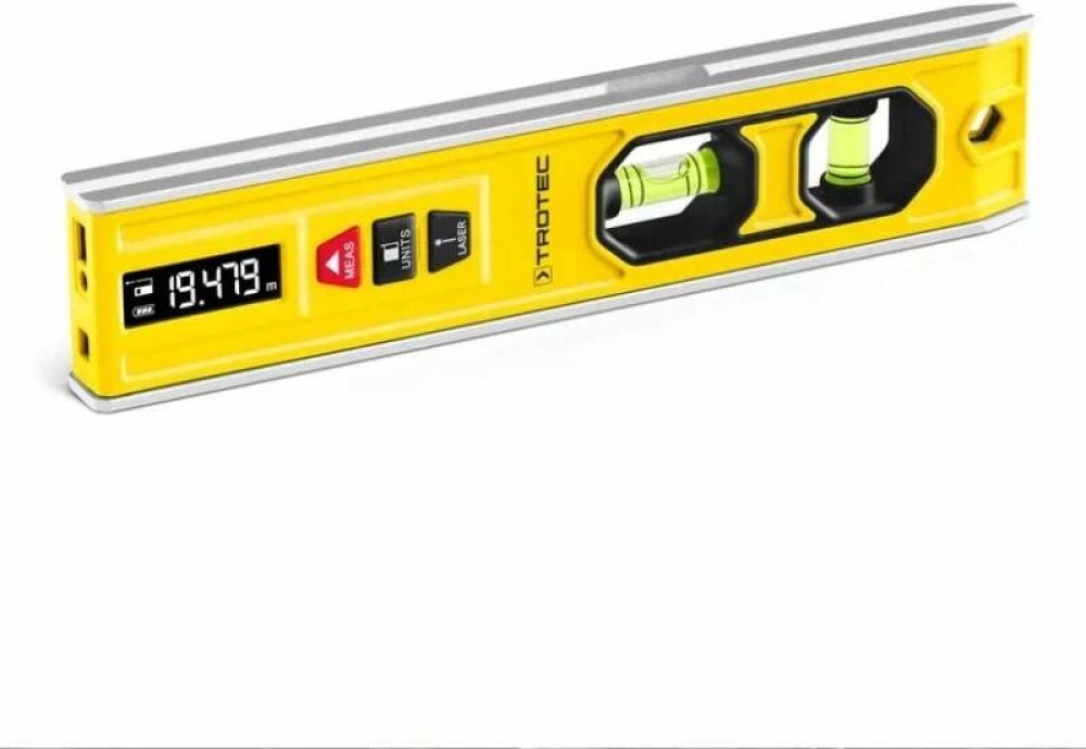 Praktická laserová vodováha BD1L Trotec kombinuje snadné použití vodováhy s praktickými funkcemi laserového dálkoměru a čárového laseru.