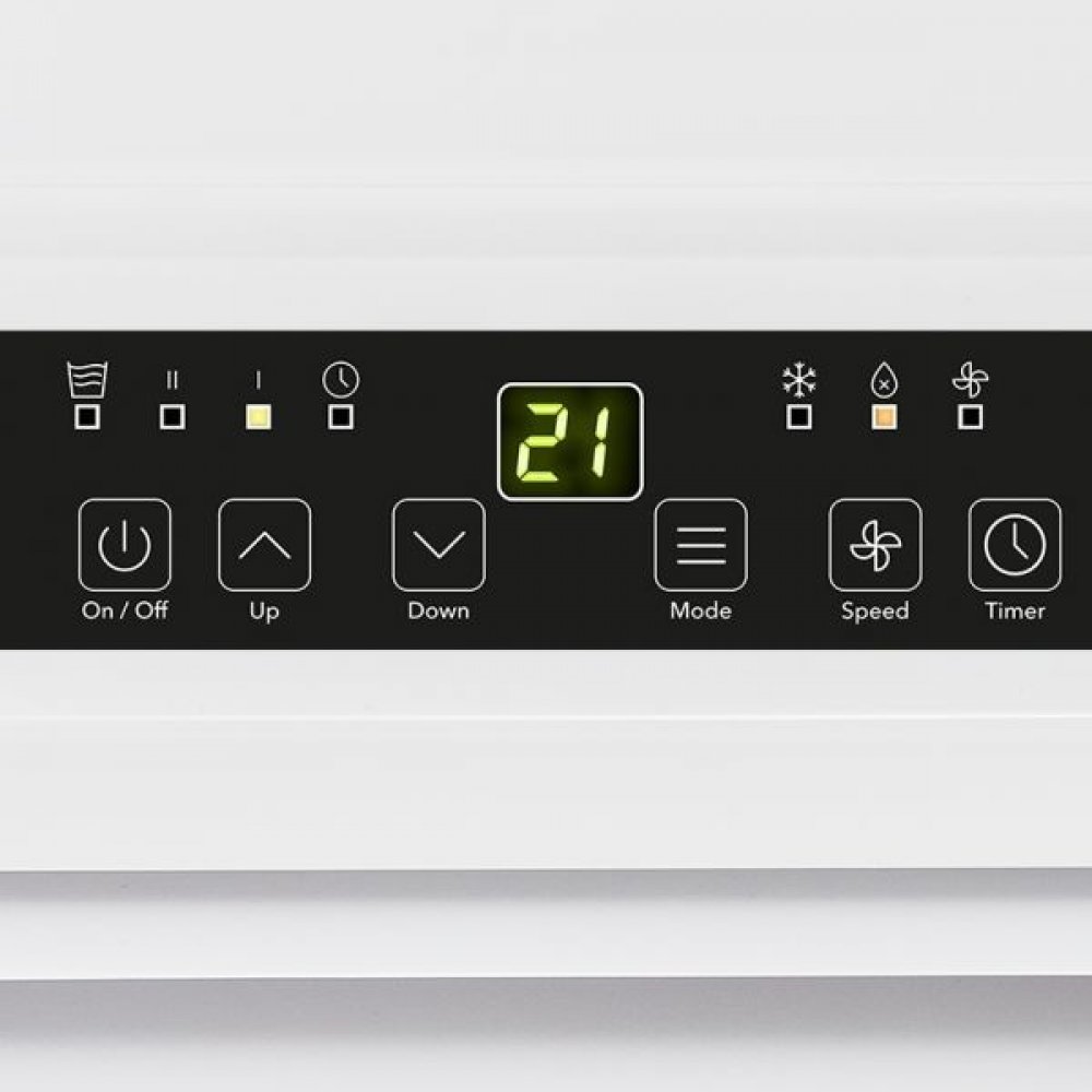 Zařízení je vybaveno LED displejem a intuitivním ovládacím panelem pro snadné nastavení požadovaných parametrů. Dálkové ovládání umožňuje pohodlné řízení funkcí na dálku. Kompaktní design, integrovaná kolečka a držadlo usnadňují přemístění jednotky mezi různými místnostmi podle potřeby.
