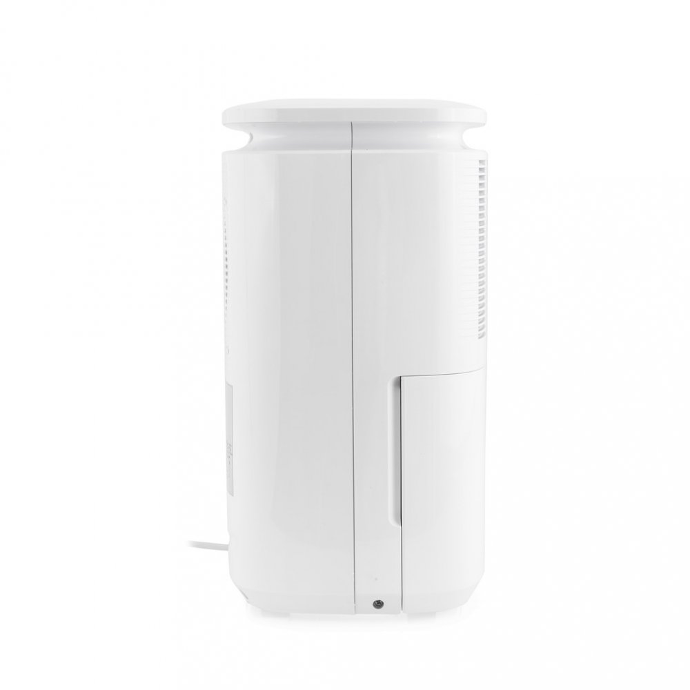 - Umožňuje nepřetržitý provoz. Odvlhčovač lze nastavit pro automatickou regulaci vlhkosti, nebo na nepřetržitý provoz. Nádrž o objemu 2,2 l umožňuje připevnění hadice pro kontinuální odtok kondenzátu během provozu. Hadice (30 cm) je součástí balení. Při provozu bez hadice se přístroj automaticky vypne po naplnění nádržky a rozsvítí kontrolku Tank full. Přístroj je vybavený plovákem pro sledování výše hladiny v nádrži.