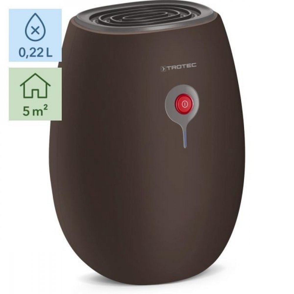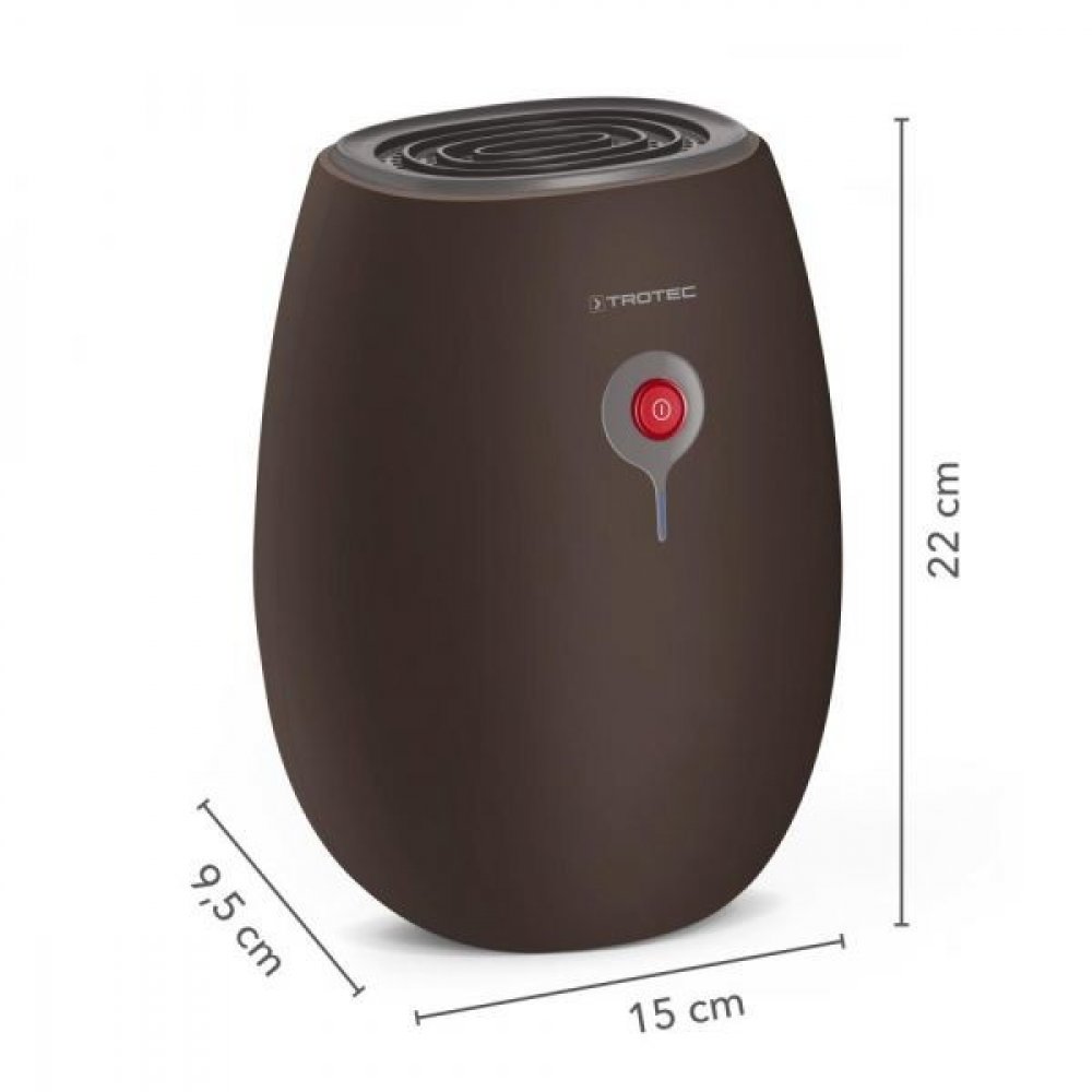 Odvlhčovač vzduchu Trotec TTP 1 E S ultrakompaktním zvlhčovačem TTP 1 E lze dosáhnout přesvědčivého výsledku i na nejmenším prostoru. Je vybaven inovativní termoelektrickou technologií, která slibuje vždy suché podmínky a osvobozuje Vás od zatuchlého vlhkého vzduchu v místnosti. K udržení suchých místností, které se obtížně větrají, jako jsou šatny, koupelny bez oken nebo komory. Vlastnosti odvlhčovače: Odvlhčovací výkon: 220 ml / 24 hod (30°C/80% r.v.) Technologie: Peltierův článek (bez kompresoru a chladiva) Vzduchový průtok: výrobce neuvádí Orientační velikost místnosti: do 5 m2 / 12,5 m3 Maximální příkon: 20 W Hlučnost: max. 35 dB(A) Provozní podmínky: Teplota vzduchu: 16°- 35°C Časovač: nemá Objem nádrže: 0,5 l Odtok hadici pro nepřetržitý provoz: ne Funkce sušení prádla: ne Filtry pro čištění vzduchu: ne Ionizátor: ne Funkce navíc: nemá Automatické udržování vlhkosti:ne Transport: lehký a malý, postačí ruce Hmotnost: 1 kg Rozměry:220 x 150 x 95 mm Délka přívodního kabelu: 1,4 m