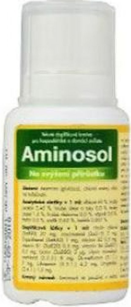 Aminosol je tekutý doplněk určený pro široké spektrum zvířat, který slouží k podpoře regenerace, vitality a imunity v obdobích zvýšené zátěže – růst, reprodukce, vysoká snáška, stres či nemoc. Díky vyvážené kombinaci aminokyselin, vitamínů skupiny B, minerálů a glukózy napomáhá rychlé regeneraci organismu po fyzické námaze i onemocnění. Vhodný pro drůbež, holuby, koně, selata, psy, kočky i drobná zvířata.
