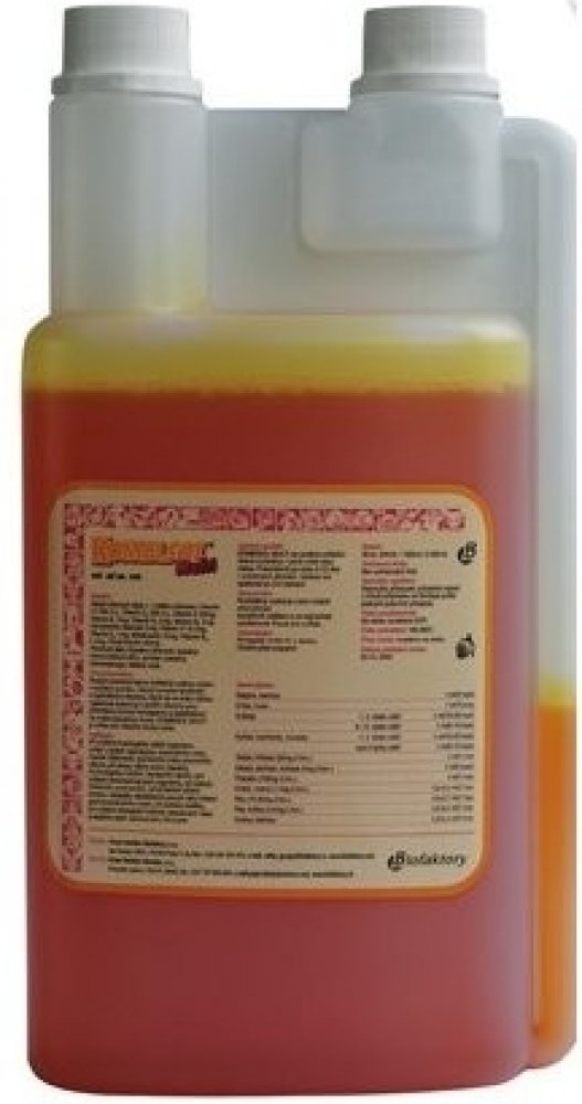 vitamin A 5 000 m.j., vitamin D3 500 m.j., vitamin E 20 mg, cholinchlorid 100 mg, niacinamid 10 mg, D-panthenol 5 mg, vitamin B2 3 mg, vitamin B1 3 mg, vitamin B6 2 mg, vitamin K 1 mg, biotin 0,015 mg, vitamin B12 0,005 mg.