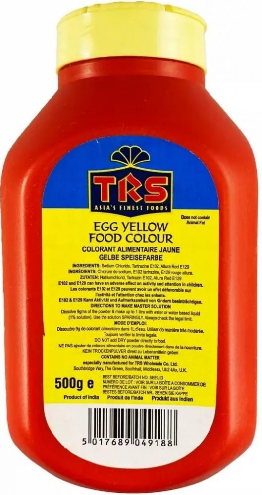 Potravinářské barvivo TRS je vysoce kvalitní produkt, který je široce používán v kuchyni ke zlepšení vzhledu, barvy a efektu pokrmů. Naše barvivo ve žluté barvě (EGG Yellow Food Colour) dodává pokrmům intenzivní žlutý odstín, který lze přizpůsobit vašim potřebám prohloubením nebo zesvětlením barvy. Potravinářská barviva TRS jsou oblíbená jak v domácích kuchyních, tak v profesionálních cukrárnách, kde se používají k vytváření chutných dezertů, zmrzliny, krémů, omáček a k výrobě cukrových hmot. Díky své intenzivní barvě je toto barvivo skvělé při výrobě koláčů, sušenek, polevy a dalšího pečiva a dodává jim živější vzhled. Je skvělou volbou pro cukrářské dekorace a další kulinářské výtvory, které vyžadují výrazné barvy.