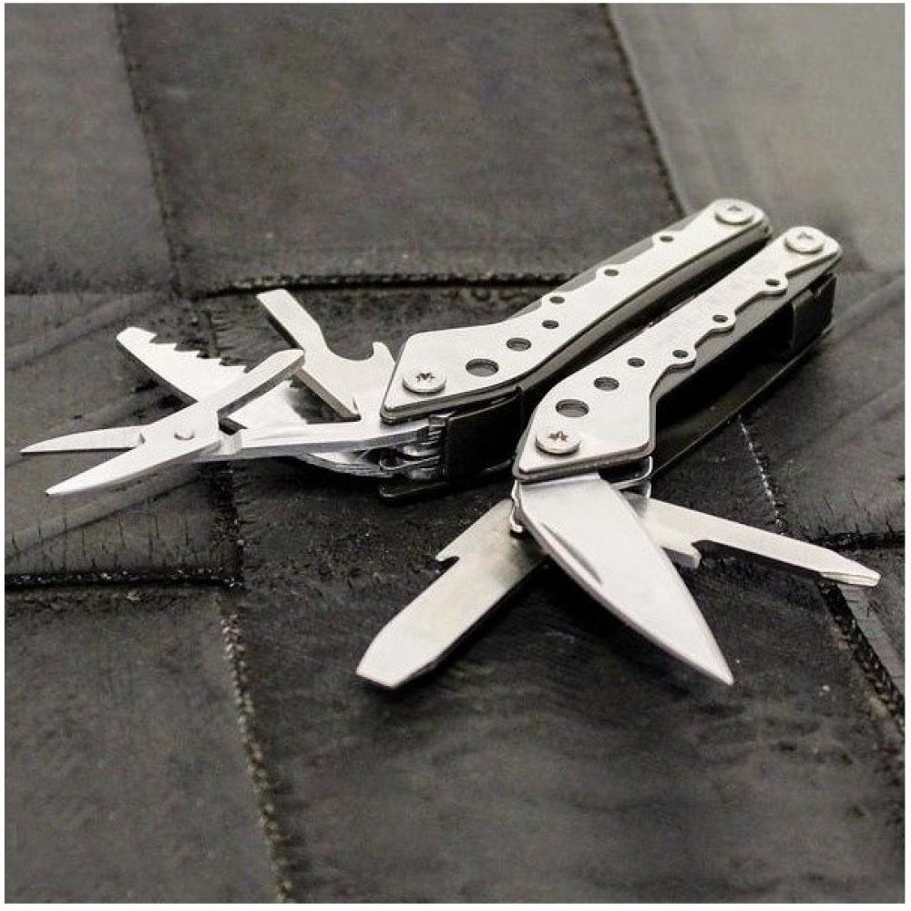 Spousta nástroju pro každodenní použití. Chytře konStruované multifunkční nářadí v otevřeném rámu kleští, kde je pomocí čepů uchycena řada základních nástroju. Vytvořeno pro nošení ve Vaší kapse. Uchovávejte v domě, autě nebo v kanceláři, jako šikovné mobilní nářadí.Specifikace: NůžJehlové kleště a nůžky na drát (pomocná pružina)Křížový šroubovák Střední + malý šroubovák Otvírač lahvíNůžkyPilkaPil...