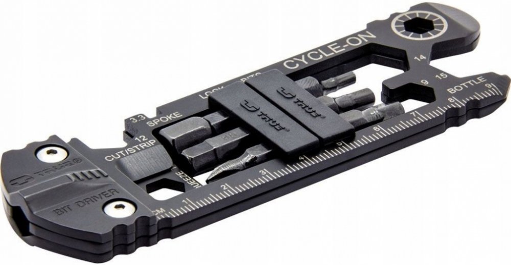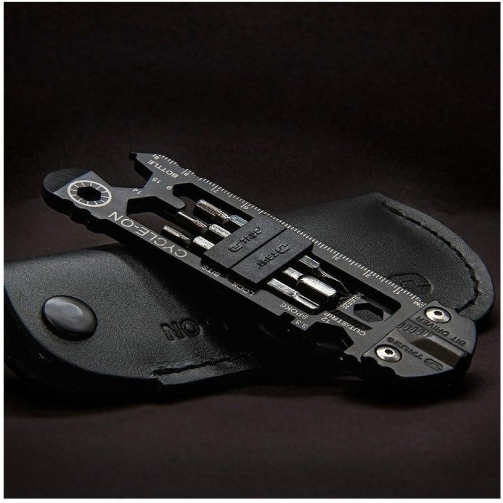 Nejtenčí multinářadí obsahující 30 nástrojů hlavně na opravu kola. Nářadí je z nerezové oceli potažené titanovou vrstvou, ale váží pouze 140 g. Hlavní benefitytenká a lehká konstrukcevysoká pevnost při zachování malých rozměrůváží pouhých 140 gsoučástí balení je stylové kožené pouzdro na druk o hmotnosti 32 gsada je uložena v luxusním dárkovém boxupatentovaný produkt navržený ve Velké Británii Multinářadí obsahujeimbusové bity 3,4,5,6 a 8 mmmagnetický držák bitůfrancouzský klíč 5 & 7 mmřezák / škrabkašestihranný klíč 6,8,9&10,11,12,13&14,15&17 mmměřítko v cm / palceotvírák na lahve2 montážní pákydržák bitů 1/4 palcepilníkstřední křížový šroubovákcentrovací klíč 3,3 / 3,4 mmkleště na lanka a bovdeny