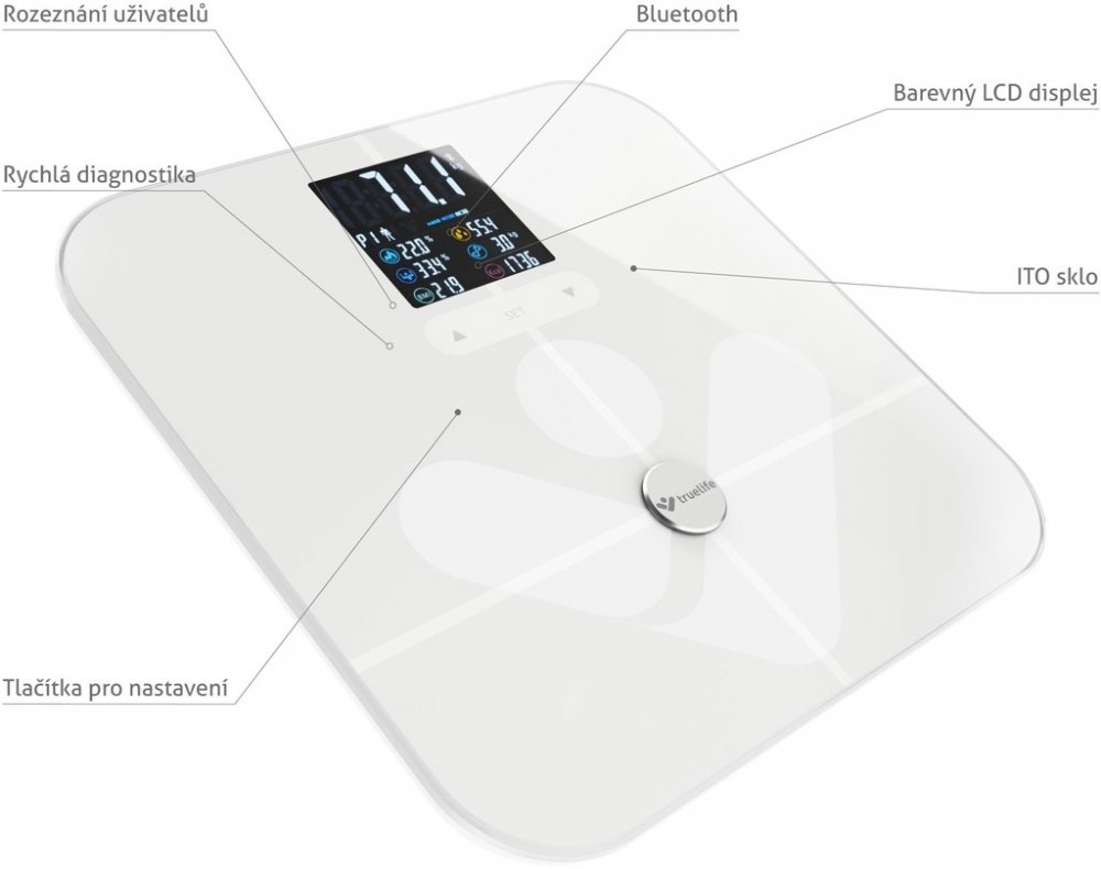 TrueLife 180 kg 100 g 8 osob diagnostické bílé s Bluetooth