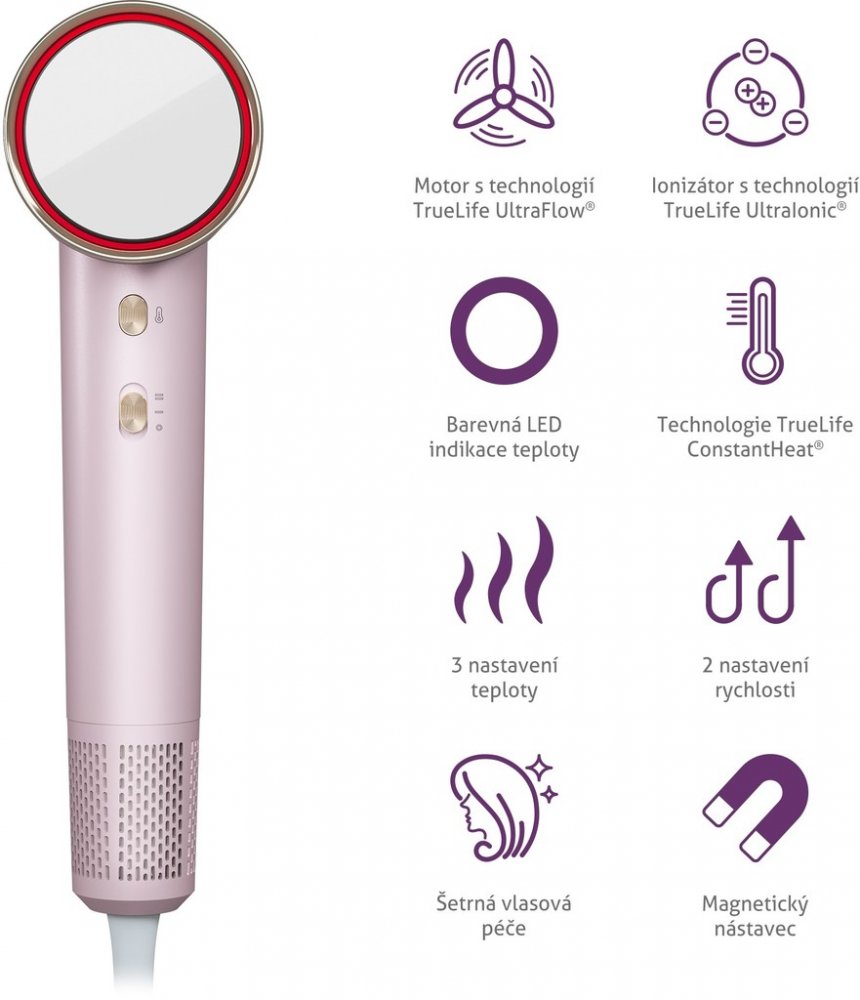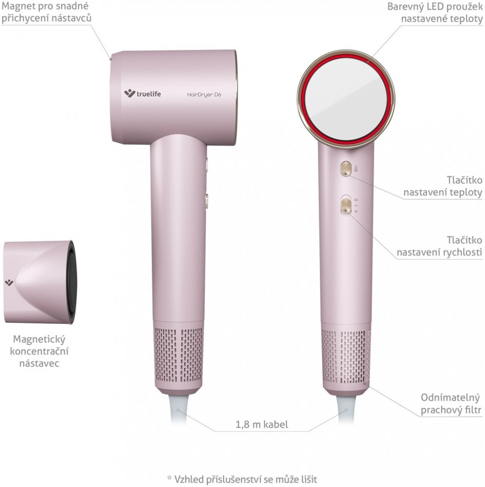 TrueLife 1600 W 2 3 1.8 m růžové TrueLife HairDryer D6