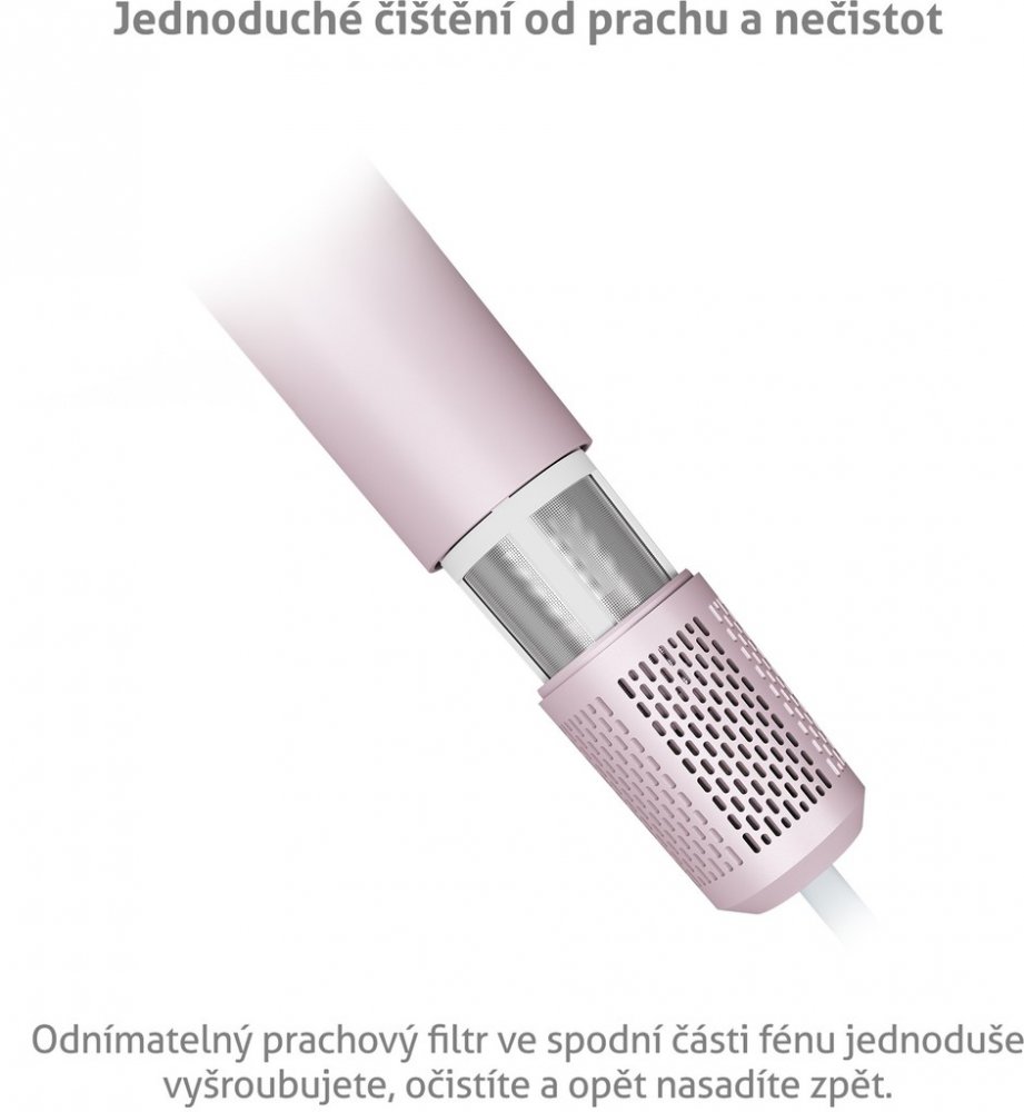 Součástí balení je také magnetický koncentrační nástavec, díky kterému můžete snadno vysušit konkrétní místo a nenarušíte si při tom účes. Manipulace s ním je díky magnetu snadná a rychlá. Prachový filtr ve vrchní části fénu kdykoliv pohodlně vyčistíte. Důležitým bezpečnostním prvkem je ochrana proti přehřátí. Manipulaci vám usnadní také 1,8 m dlouhý kabel.