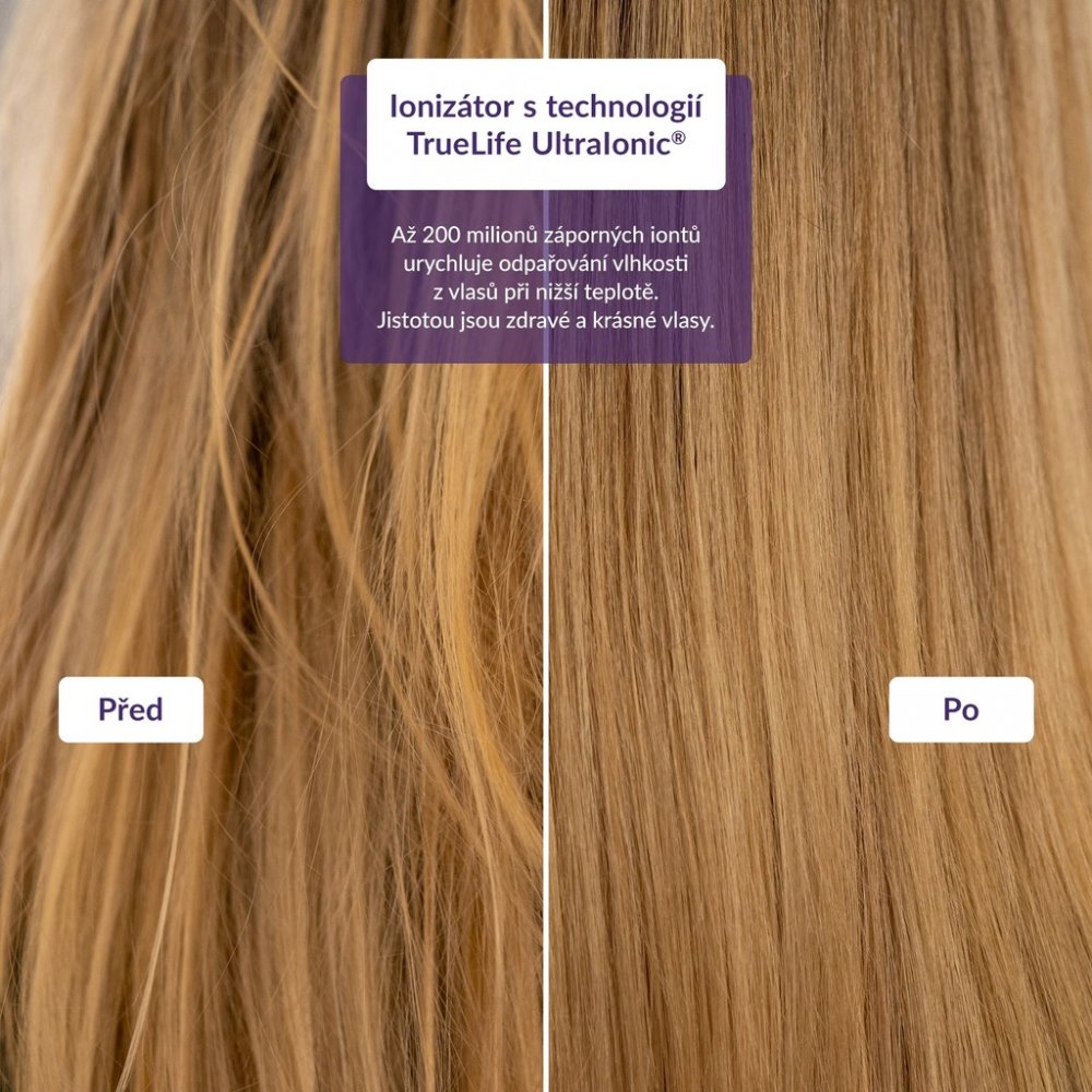 S fénem TrueLife HairDryer D6 se o své vlasy bát nemusíte. Ionizátor s technologií TrueLife UltraIonic vyzařuje až 200 milionů záporných iontů. Ty působí i uvnitř vlasů, vysoušení tedy trvá kratší dobu a může probíhat při nižších teplotách. Celý proces je tak šetrnější k vašim vlasům.