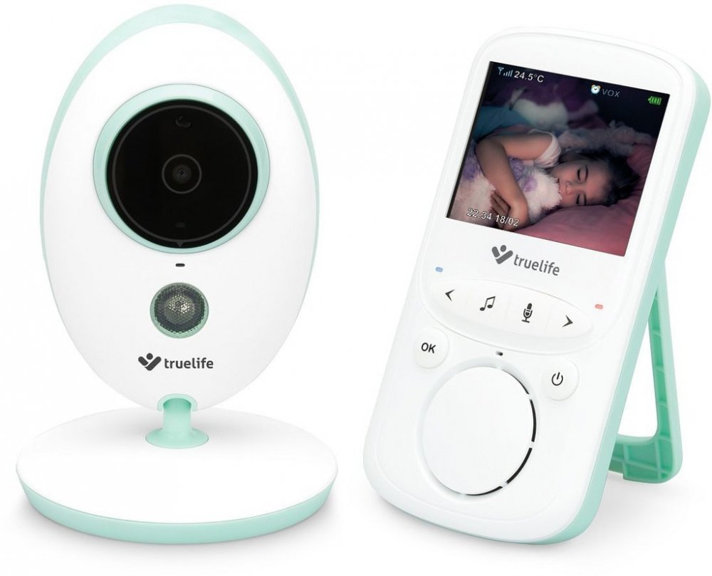 TrueLife NannyCam V24 je digitální video chůvička s přehledným barevným 2,4 palcovým LCD displejem, pokojovým teploměrem, budíkem, automatickým nočním módem včetně VOX režimu a vysoce kvalitním přenosem zvuku i obrazu s dosahem až 300 metrů.