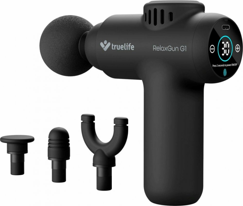 TrueLife pistole na celé tělo přenosné (do 500 g) akumulátorové (bezdrátové) perkusní (vibrační) 440.0 g bez zahřívání 30 4 s jemnou amplitudou (do 8 mm) středně hlasité (50–65 dB)