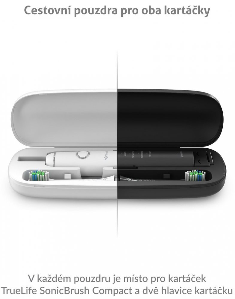 Součástí balení jsou dvě praktická pouzdra v bílé a černé barvě, která se vám pohodlně vejdou do hygienické taštičky.