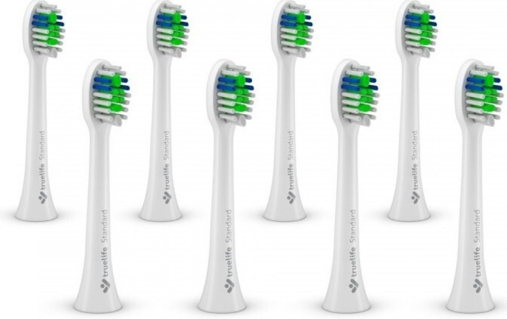 Sada 8 náhradních hlavic kartáčku je kompatibilní s TrueLife SonicBrush Compact. Hlavice vydrží až 3 měsíce používání, poté se začnou třepit, ztrácí účinnost a navíc se na nich hromadí bakterie.V bílé barvě.Vyvinuty speciálně pro precizní čištění zubů.Modré štětiny, které vyblednutím po 3 měsících indikují čas na výměnu.Balení obsahuje 8 ks.