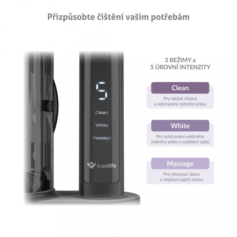 TrueLife SonicBrush K150 UV – Sonický zubní kartáček s 15 čistícími módy a UV sterilizátorem