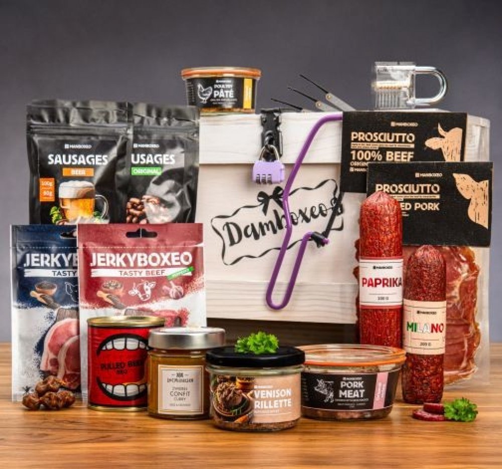 RYZE ČESKÁ DÁRKOVÁ TRUHLA! Naše Truhla pro Masožravkyni XXL je sestavena z těch nejkvalitnějších produktů, které nejsou běžně k sehnání. Jedná se o ryze české produkty, vyrobené tím nejpoctivějším způsobem bez dochucovadel, stabilizátorů a éček...