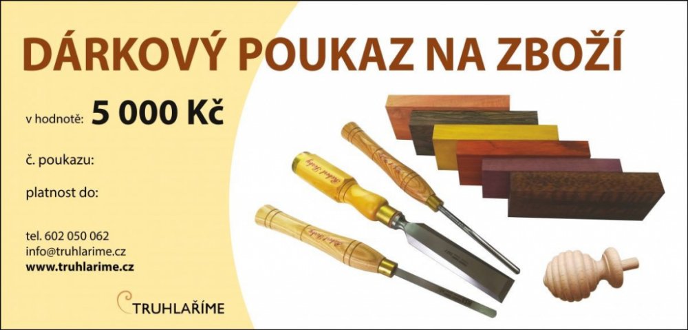 Truhlaříme Dárkový poukaz na zboží v hodnotě 5000 Kč (DPUZBO5000)