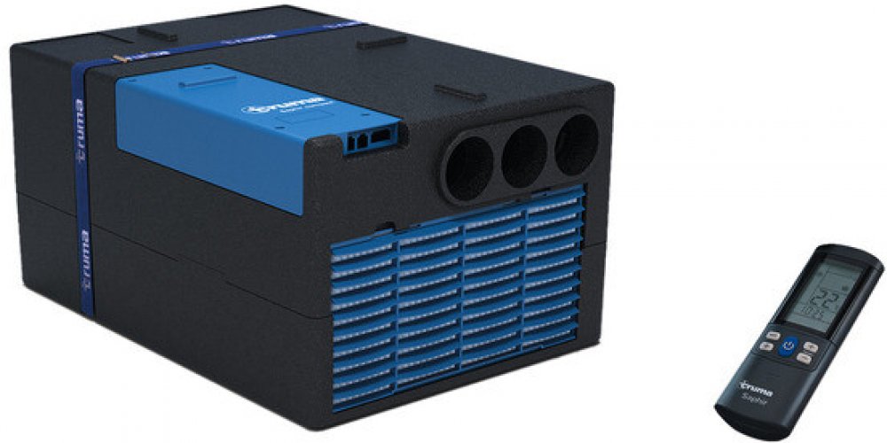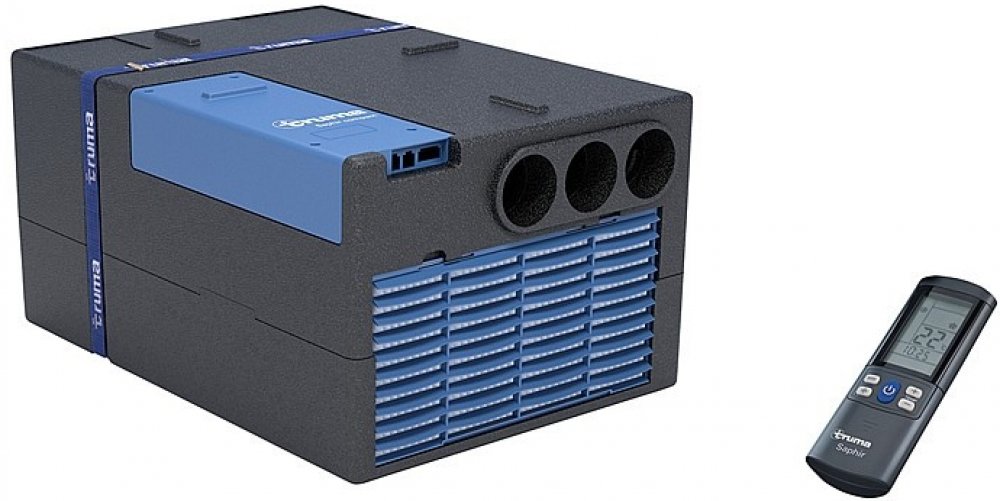 Klimatizace Saphir Compact Saphir Compact je určen pro karavany s nástavbou do 5,5 metru. Rozměr 560 x 400 x 290 mm. Díky nízké spotřebě je prakticky použitelný ve všech běžných evropských kempech. Při 230V Fan Mode (pouze ventilátor) má odběr 0,4 A, Cool Mode (plné chlazení) 2,8A. Během jízdy má spotřebu při 12V 9A při Fan Mode, během chlazení 12V/55A. S akumulátorem bez podpory alternátoru povol...