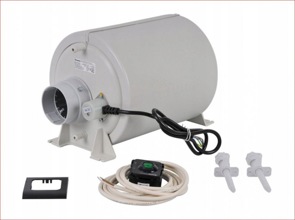- voda je ohřívána horkým vzduchem z topného systému, nebo použitím elektrického topného tělesa 220 V / 300 W