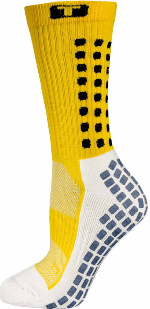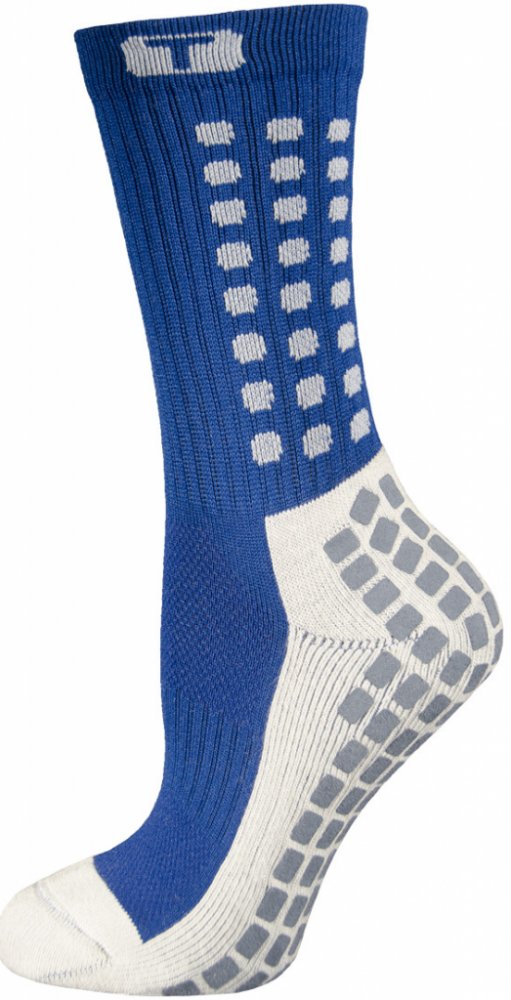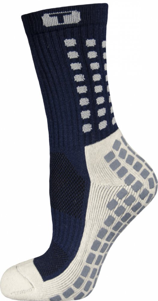 Fotbalové ponožky Trusox Cushion námořnická modrá Trusox Mid - Calf Cushion Socks jsou silnější, neklouzavé fotbalové ponožky vyrobené z materiálů šetrných k pokožce. Použití technologie IN / EX , tj.e. umístění malých protiskluzových gumiček na spodní část ponožky i dovnitř, takové řešení, že se naše noha nebude v botě pohybovat, i když je mokrá. Mikrosíťka a nárt na nártu zajišťují dobrou ventil...