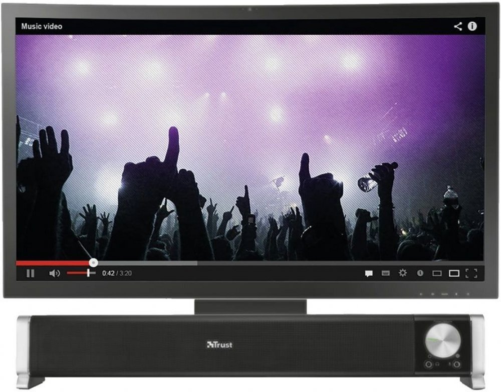 Stylový horizontální reproduktor navržený tak, aby jej bylo možné ideálně umístit pod jakýkoliv počítačový monitor.