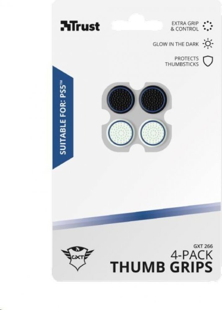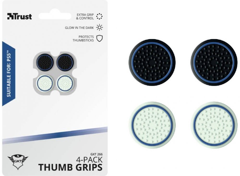 Trust GXT 266 4-pack Thumb Grips pro PS5. Sada 4 palcových gripů pro váš ovladač PlayStation 5 pro extra úchop a kontrolu.