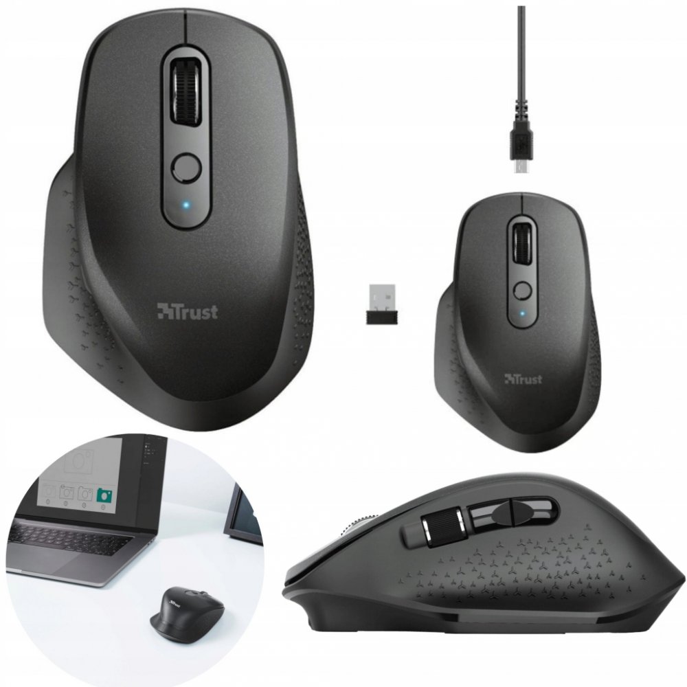 TRUST Ozaa Rechargeable Wireless Mouse. Špičková bezdrátová myš v pohodlném provedení s vestavěnou dobíjecí baterií.