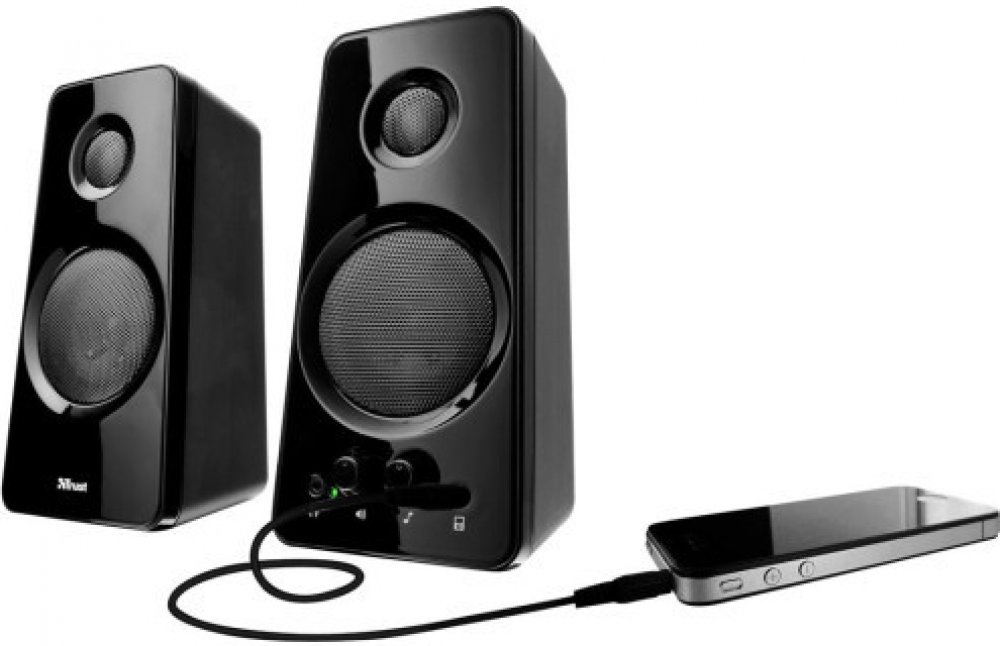 Stylové reproduktory s bohatým zvukem dokážou vytvořit vysoký celkový výstupní výkon 18 RMS nebo maximálně až 36W. Ovládání hlasitosti a basů se nachází na jednom ze satelitů, který na sobě má i výstup na připojení sluchátek, abyste si mohli dopřát nerušeného poslechu. Na přední straně se nachází i 3,5mm jack vstup pro nejrůznější mobilní přístroje jako jsou iPody, iPhony, různé druhy MP3 i MP4 přehrávačů a jiných kompatibilních přístrojů. K počítači se reproduktory připojují prostřednictvím klasického 3,5mm jack konektoru a napájeny jsou přes USB.