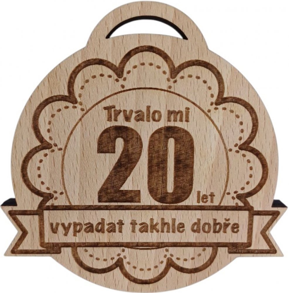 Nádherná medaile s vygravírovaným nápisem: Trvalo mi 20 let vypadat takhle dobře je úžasným dárkem pro všechny čtyřicátníky.